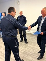 W piątek w Komendzie Miejskiej Policji w Tychach odbyła się uroczystość, podczas której szef tyskich policjantów mł. insp. Tomasz Zawadzki podziękował za wieloletnią służbę odchodzącemu na emeryturę Dyżurnemu Zespołu Dyżurnych Wydziału Prewencji asp. szt. Sławomirowi Stanclikowi.