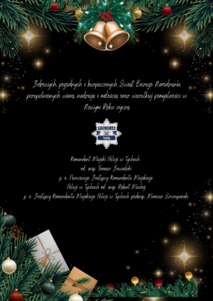 Z okazji nadchodzących Świąt Bożego Narodzenia Komendant Miejski Policji mł. insp. Tomasz Zawadzki w imieniu własnym i kierownictwa tyskiej Policji składa wszystkim życzenia spokojnych, zdrowych i radosnych Świąt, spędzonych w ciepłej rodzinnej atmosferze.
