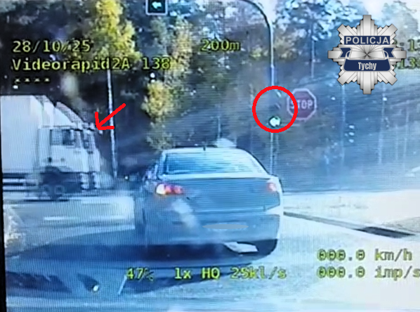 Policjanci „Grupy Speed” Wydziału Ruchu Drogowego Komendy Miejskiej Policji w Tychach zatrzymali do kontroli kierowcę samochodu ciężarowego, który zlekceważył sygnalizację świetlną i przejechał przez skrzyżowanie na czerwonym świetle.