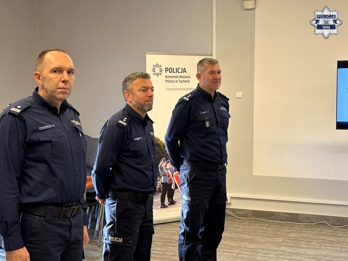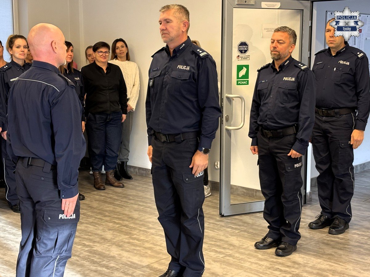 Rozkazy personalne weszły w życie wczoraj. W wydarzeniu uczestniczyli insp. Radosław Kacprzak, mł. insp. Tomasz Zawadzki – Komendant Miejski Policji w Tychach, oraz mł. insp. Sławomir Zynka – Naczelnik Wydziału Kadr KWP w Katowicach.