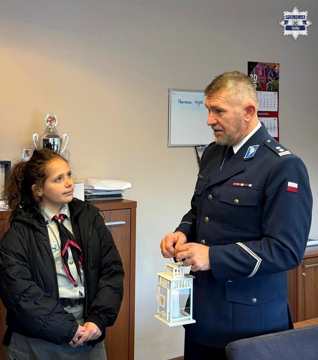 Harcerki i harcerze z hufca imienia Wojska Polskiego w Tychach odwiedzili tyską komendę, przekazując policjantom nie tylko symboliczny płomień, ale także serdeczne życzenia świąteczne. Betlejemskie Światło Pokoju jest symbolem Świąt Bożego Narodzenia – każdego roku zapalane jest w Grocie Narodzenia Pańskiego w Betlejem, skąd przemierza tysiące kilometrów, by do 24 grudnia zagościć na wigilijnych stołach w wielu zakątkach świata, w tym również w Polsce.