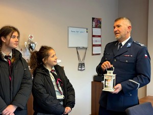 Z rąk przedstawicieli harcerstwa Betlejemskie Światło Pokoju, w imieniu tyskich policjantów oraz pracowników cywilnych, odebrał Komendant Miejski Policji w Tychach mł. insp. Tomasz Zawadzki. W spotkaniu uczestniczył również Zastępca Komendanta Miejskiego Policji podinsp. Mariusz Szczepański.
