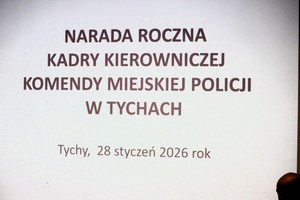 W Komendzie Miejskiej Policji w Tychach wczoraj odbyła się roczna narada podsumowująca działalność funkcjonariuszy w 2025 roku. Podczas spotkania przedstawiono efekty pracy policjantów oraz kluczowe kierunki działań w zakresie zwalczania przestępczości i poprawy bezpieczeństwa mieszkańców.