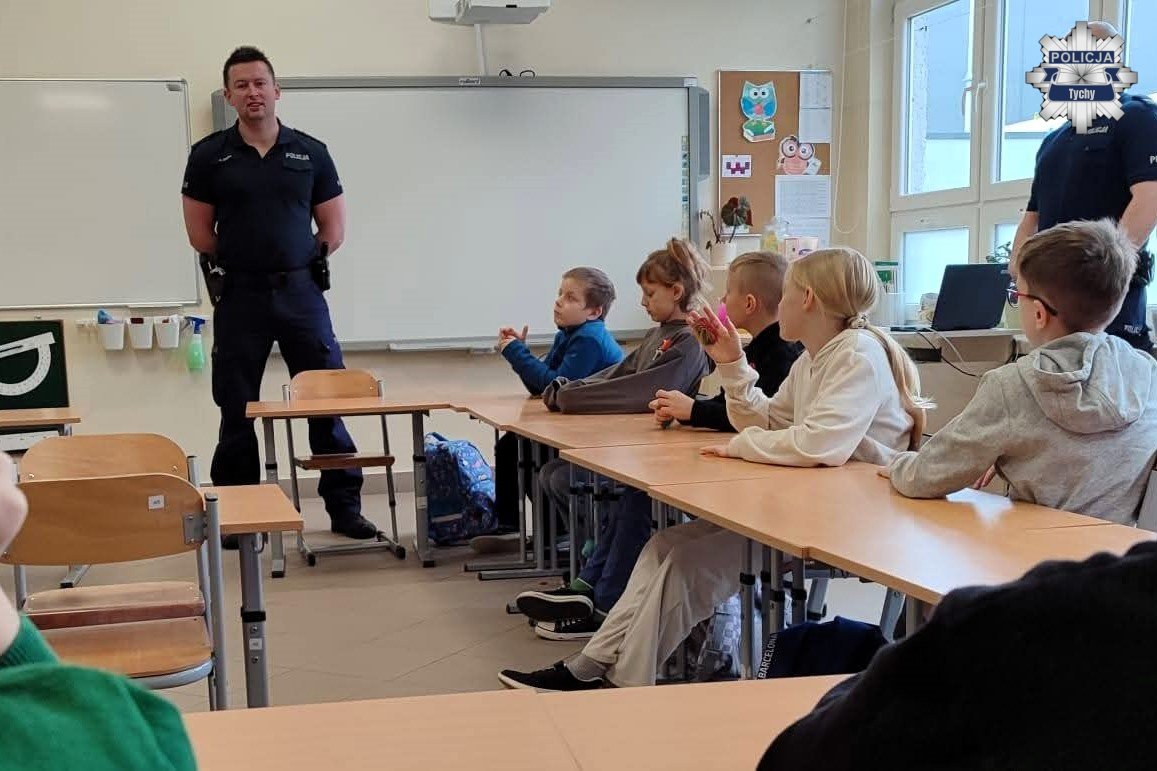 Policjanci rewiru dzielnicowych Komendy Miejskiej Policji w Tychach odwiedzili uczniów klasy trzeciej Szkoły Podstawowej nr 21 w Tychach. Spotkanie odbyło się w ramach działań profilaktycznych prowadzonych przez śląską Policję w związku z rozpoczynającymi się feriami zimowymi.