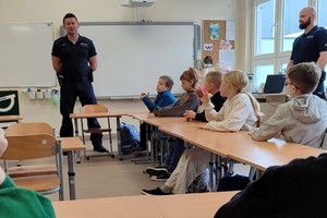 Na zakończenie wizyty funkcjonariusze zaprezentowali dzieciom elementy wyposażenia służbowego, które na co dzień wykorzystują w trakcie pełnienia służby. Uczniowie mieli okazję z bliska zobaczyć policyjny sprzęt oraz dowiedzieć się, do czego jest on wykorzystywany.