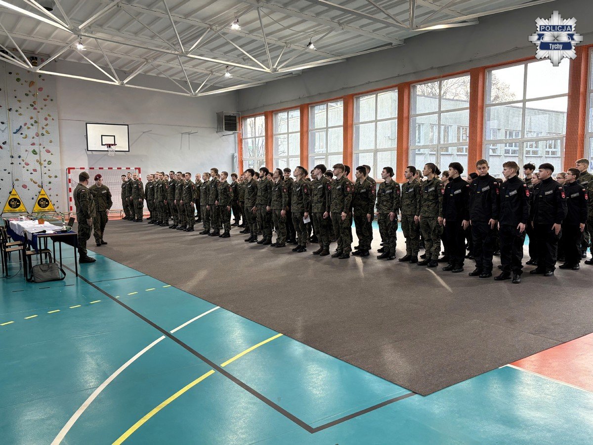 W środę w Zespole Szkół im. Orląt Lwowskich w Tychach odbył się konkurs pokazów musztry, który zgromadził uczniów klas mundurowych oraz przedstawicieli służb mundurowych. Wydarzenie było okazją do zaprezentowania wysokiego poziomu wyszkolenia młodzieży kształcącej się w profilach policyjnym, Straży Granicznej oraz wojskowym, a także do integracji środowiska szkolnego z funkcjonariuszami Policji.